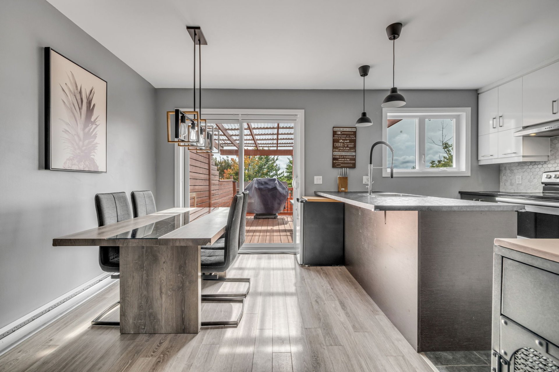 Inclus : luminaires, lave-vaisselle, pôle et rideaux (excepté le rideau hotwheel dans une des petites chambres), thermopompe